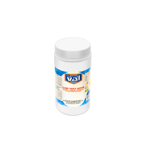 Línea Piscinas CAJA 20 unidades Cloro Piscinas Triple Acción 1 kg (Pote, 5 Tabletas) Especificaciones »